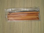 Dubbele haaknaald van bamboe met aan beide zijden een haak van dezelfde maat.
